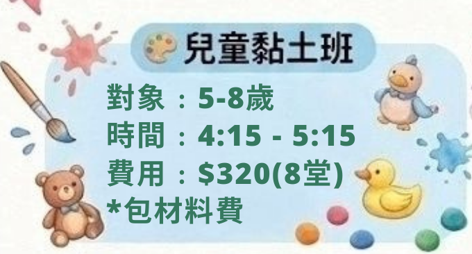 運用黏土製作立體造型 藉此透過不同主題 激發小朋友發揮創意 同時訓練手眼協調及手部小肌肉
