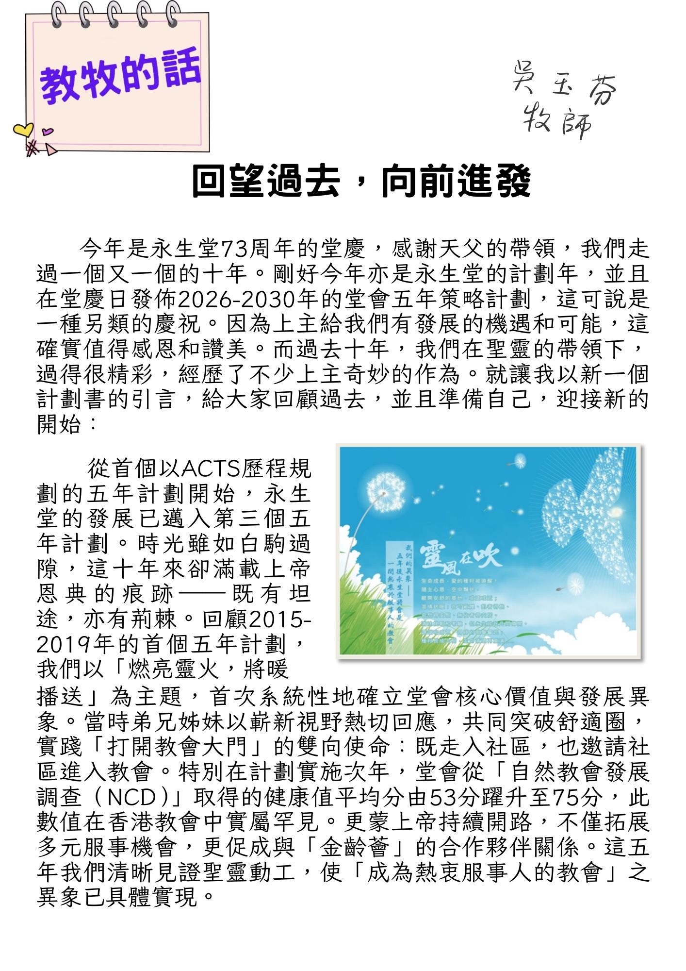 每月金句 : 「報好信息的錫安哪,要登高山;報好信息的耶路撒冷啊,要極力揚聲。」(賽 4 0 : 9上 )