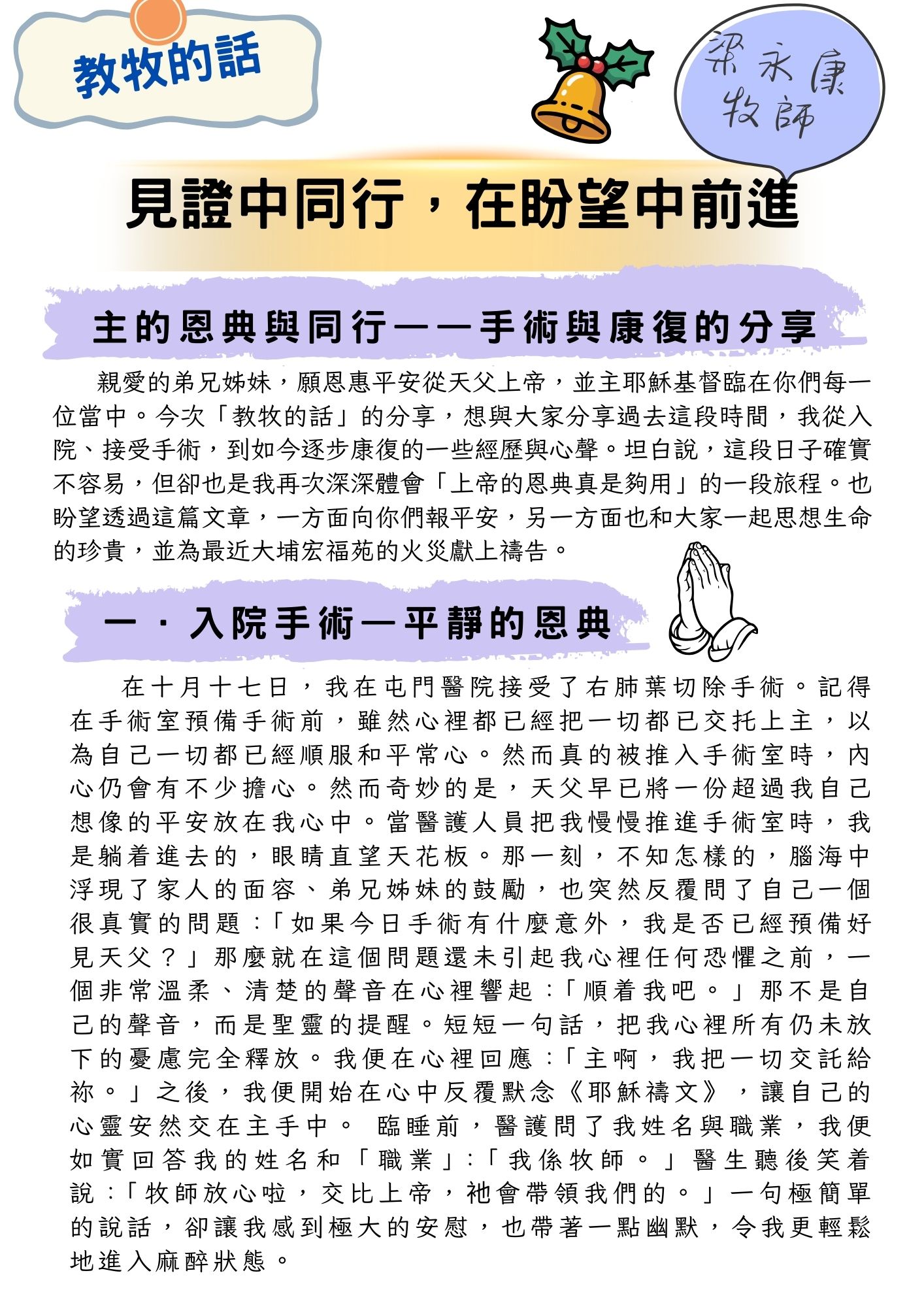 梁永康牧師 10月